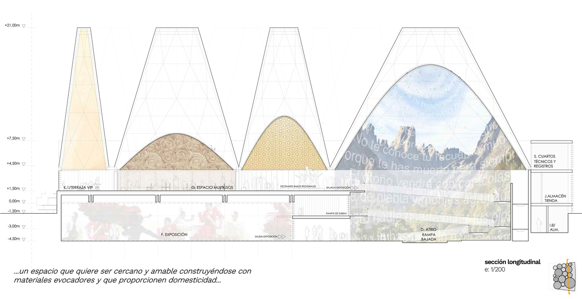 • La planta enterrada acoge el teatro y la galería expositiva.