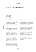OAXACA FILMFEST 2014Oaxaca, MexicoSeveral venues 04 - 11 Oct 2014Oaxaca FilmFest is an international film festival founded in the city of Oaxaca de Juárez, Mexico, in 2010. Its success stems from the collaboration between the public and private sectors.Running from 4 to 11 October, Oaxaca FilmFest offered a week of the best world premieres, an international symposium for scriptwriters, and special events in which the audience took part. This year AC/E facilitated the participation of the Spaniards Francisco López Villarejo and Manuel Llamas Antón through the PICE mobility programme.Oaxaca Filmfest is one of the 25 most important film festivals in the world according to MovieMakerMagazine and one of the biggest in Latin America. Its scriptwriting contest is highly competitive and the Pitch It platform allows scriptwriters to sell their scripts to industry executives from all over the world. It has conducted the longest ever university rally, lasting 10 days, and during the festival it runs the Academia programme consisting of filmmaking classes for enhancing participants’ skills. It has furthermore created partnerships with Google Play and iTunes to provide filmmakers with an alternative outlet for distributing their films.Cinema182Results ‘14